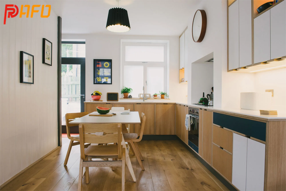ตู้ครัวแบบโมดูลาร์สไตล์ญี่ปุ่นสมัยใหม่ พร้อมอุปกรณ์บานพับเคลือบอะคริลิก ท็อปเคาน์เตอร์ลายหินอ่อน พร้อมอ่างล้างจาน