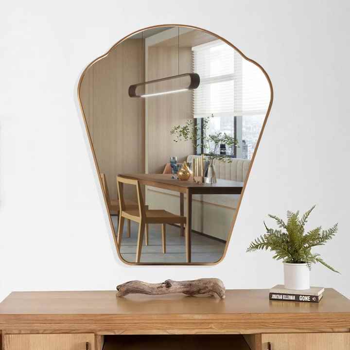 ชื่อสินค้า:กระจกติดผนังทรงไม่สมมาตร อะลูมิเนียมอัลลอยสีทอง