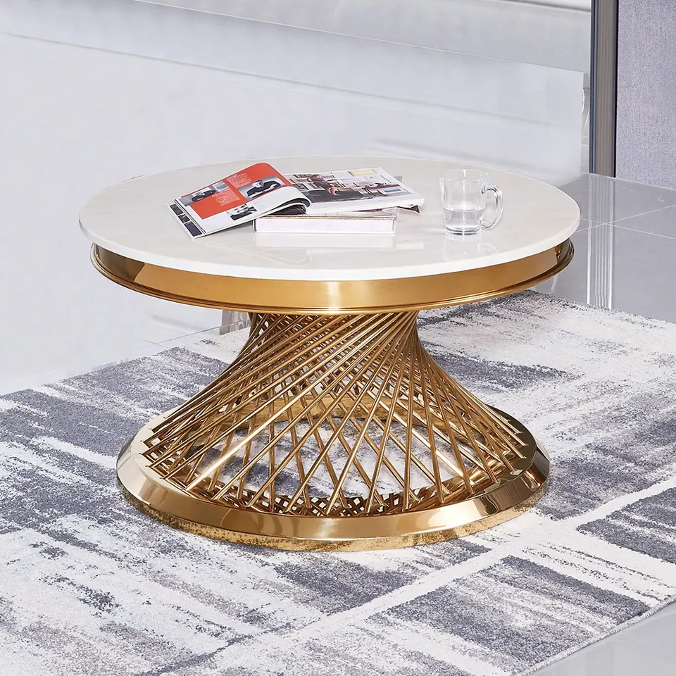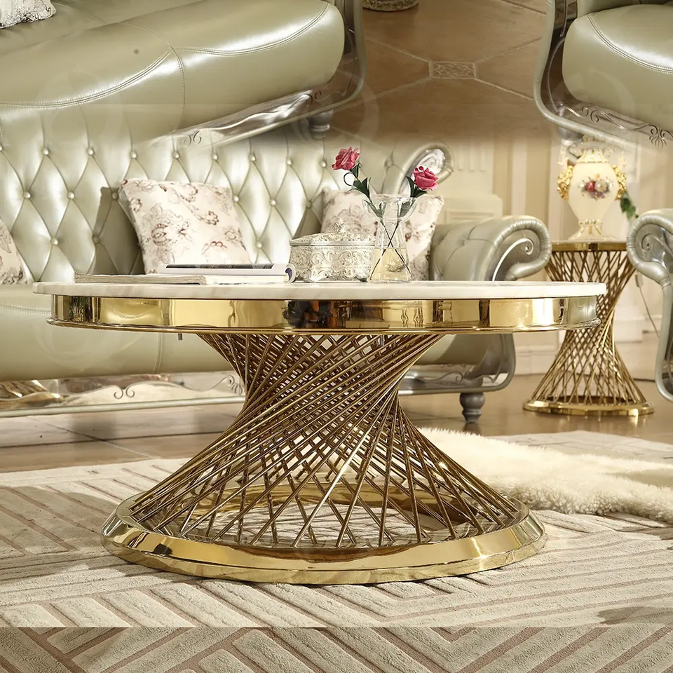โต๊ะข้างกาแฟทรงกลมทำจากสแตนเลสสีทองทำจากหินอ่อนหรูหราทันสมัยออกแบบได้ตามต้องการเฟอร์นิเจอร์สำหรับห้องนั่งเล่นในบ้าน