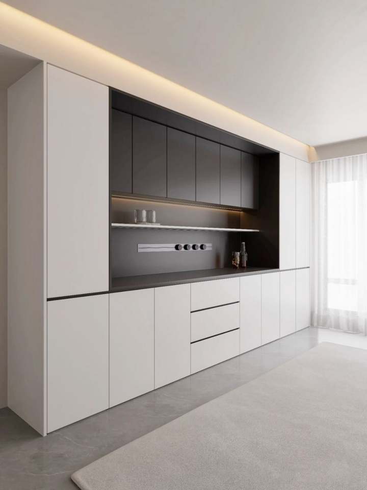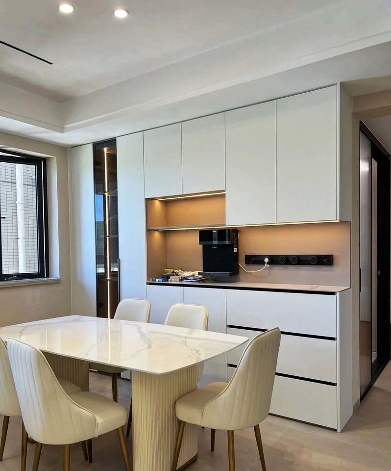 ตู้ไม้กันความชื้นกันรอยขีดข่วนและป้องกันรอยขีดข่วนทันสมัยกำหนดเองได้สไตล์มินิมอลสำหรับจัดเก็บในตู้ครัว