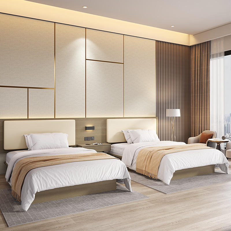 โครงเตียงไม้แข็งคู่แบบเดี่ยวที่ทันสมัยทำจากผ้าหุ้มหัวเตียงทนทานสำหรับโรงแรมห้องนอนเฟอร์นิเจอร์