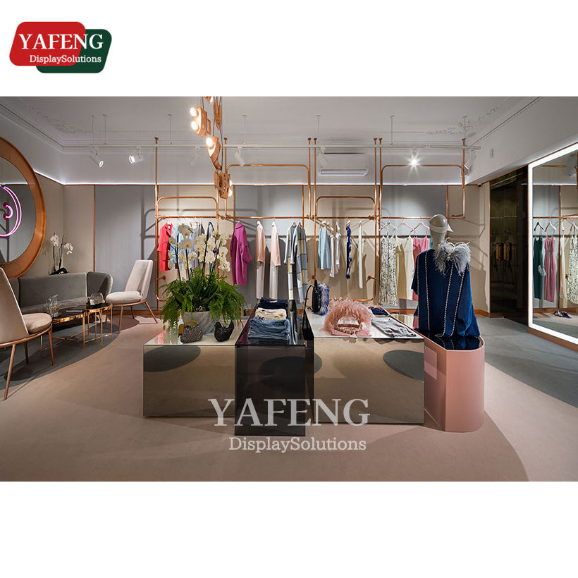 ชื่อผลิตภัณฑ์:ชั้นวางโชว์เสื้อผ้าชั้นสแตนเลสสีทอง