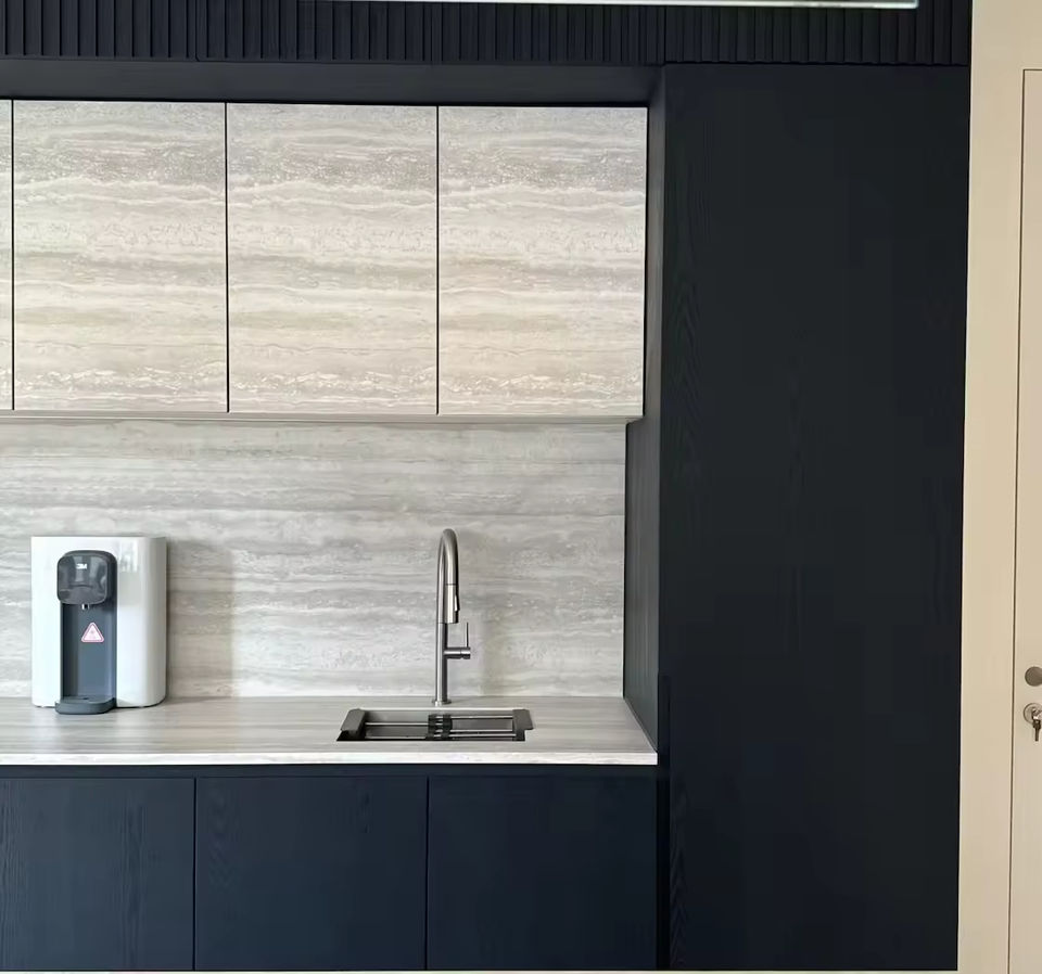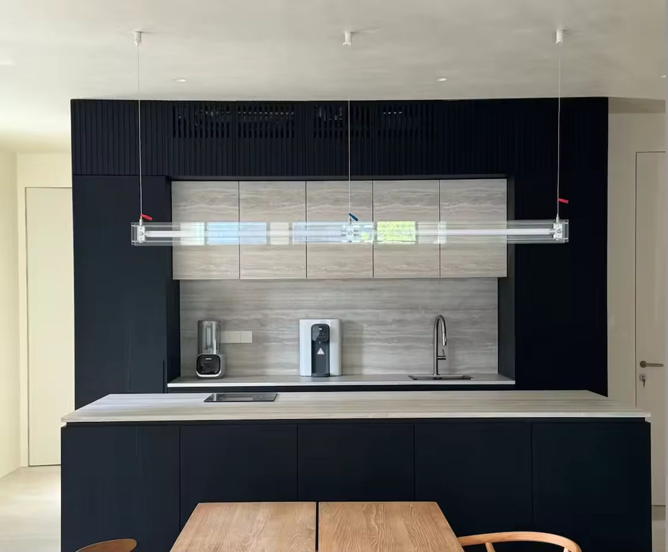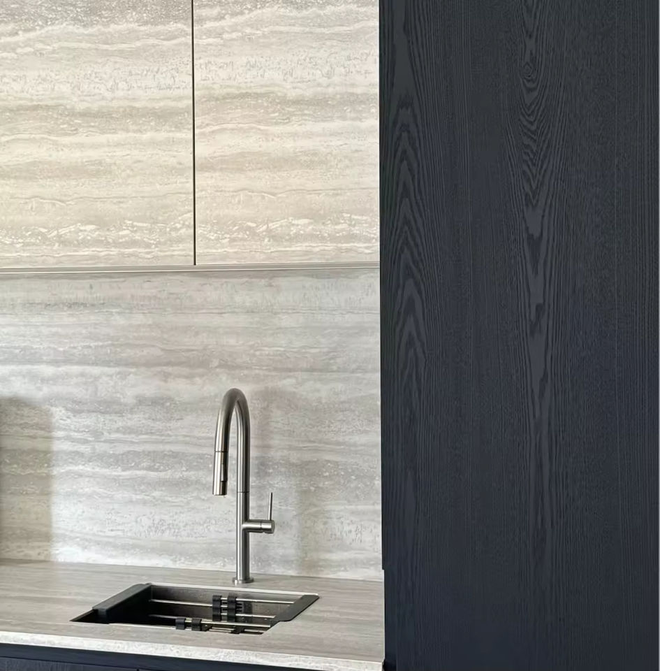 ชุดตู้ครัวสไตล์โมเดิร์นสั่งทำพิเศษ พร้อมไอส์แลนด์หรูหราหินอ่อน ไม้เนื้อแข็ง ดีไซน์ครัวมินิมอลระดับไฮเอนด์