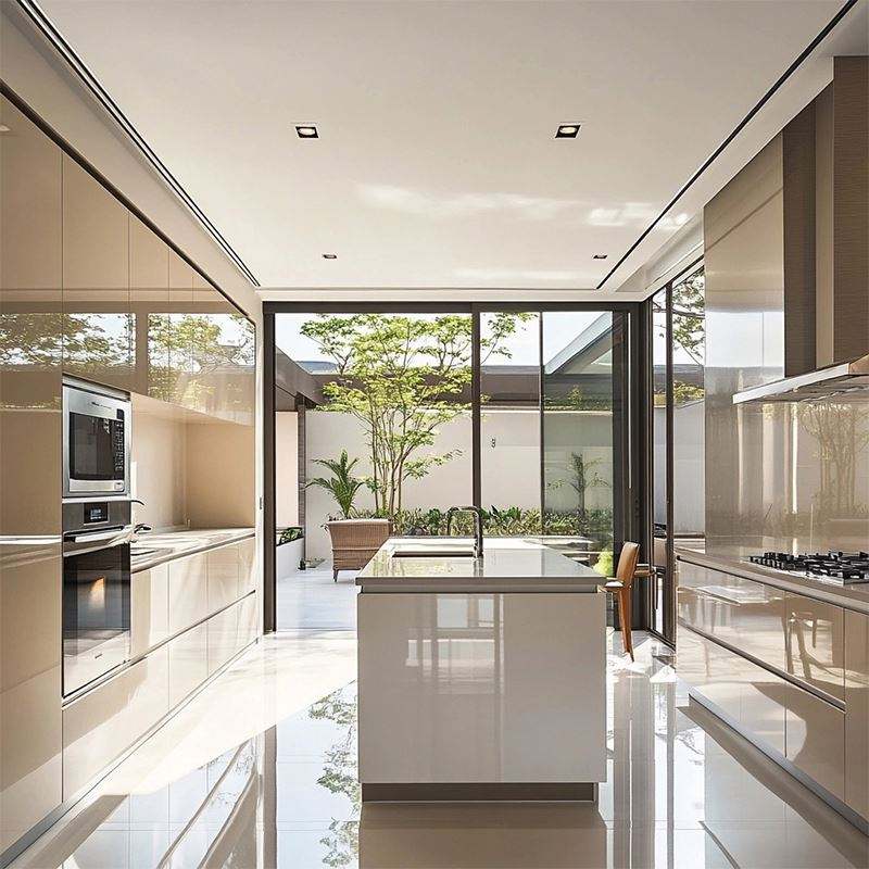 ลักษณะ:ทำด้วยไม้, เป็นมิตรกับสิ่งแวดล้อม, ทนไฟ, ครัวสมัยใหม่, ตู้ครัวแบบแยกส่วน