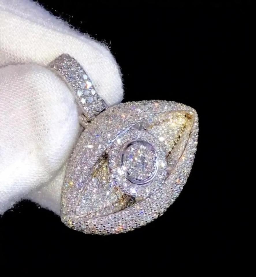 จี้รูปดวงตากันภัยประดับเพชรโมอิสซาไนต์หรูหราแบบสั่งทำพิเศษ จี้รูปดวงตากันภัยแบบศาสนา ทำจากเงินแท้ 925 สำหรับผู้ชายสไตล์ฮิปฮอปแร็ปเปอร์