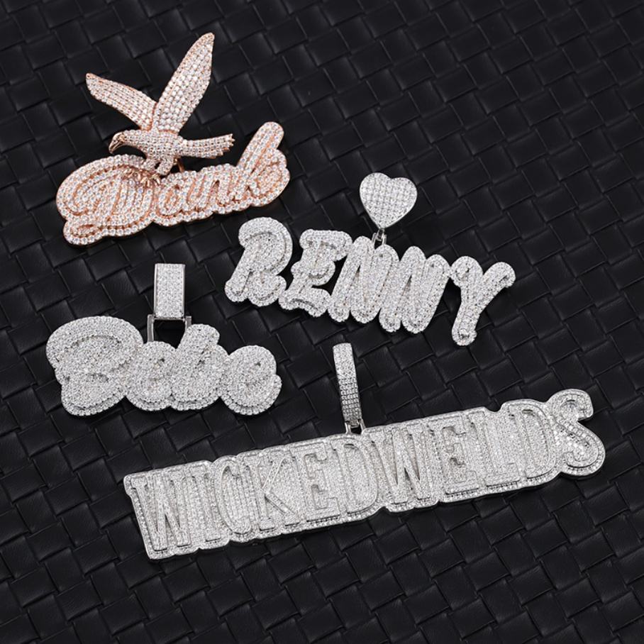 จี้ตัวอักษรมอยส์ซาไนต์สั่งทำ เครื่องประดับเงินแท้ 925 ประดับเพชรแบบ Iced Out สไตล์ฮิปฮอป จี้สร้อยคอชื่อมอยส์ซาไนต์