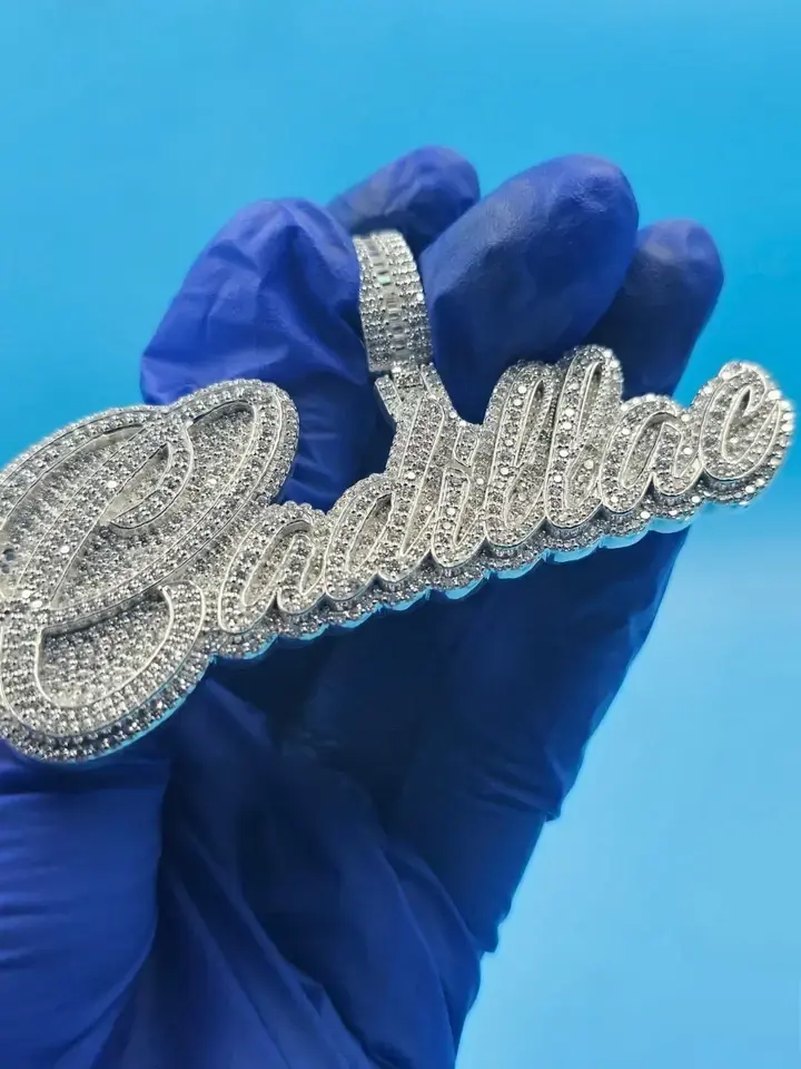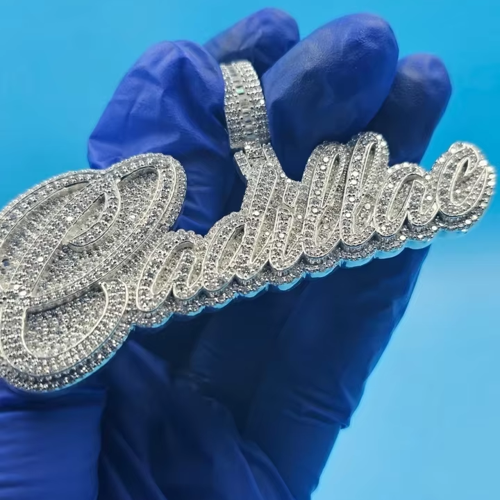 จี้เพชรโมอิสซาไนต์สั่งทำพิเศษ จี้ฮิปฮอปแบบฝังเพชร เครื่องประดับผ่านการทดสอบเพชร สร้อยคอแบบปรับแต่งได้ จี้เงินแท้ S925