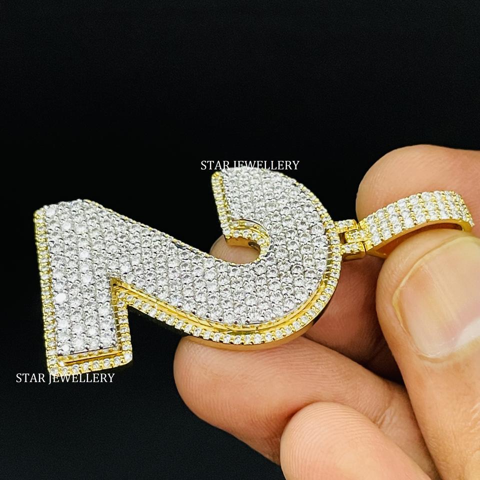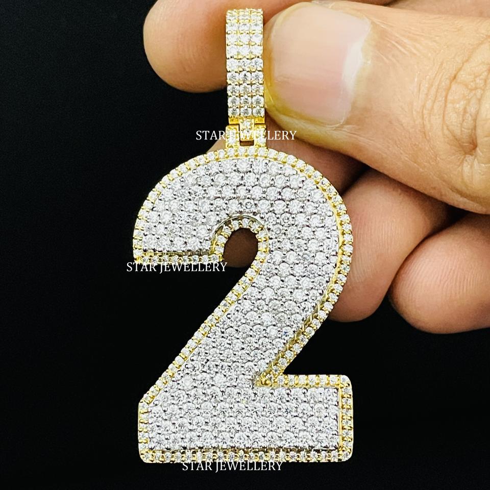 จี้หมายเลข Moissanite ที่กำหนดเองจี้ตัวเลข2แบบ VVS Moissanite สีเงิน925ออกจี้ตัวเลขฮิปฮอปโมอิสซานไนต์