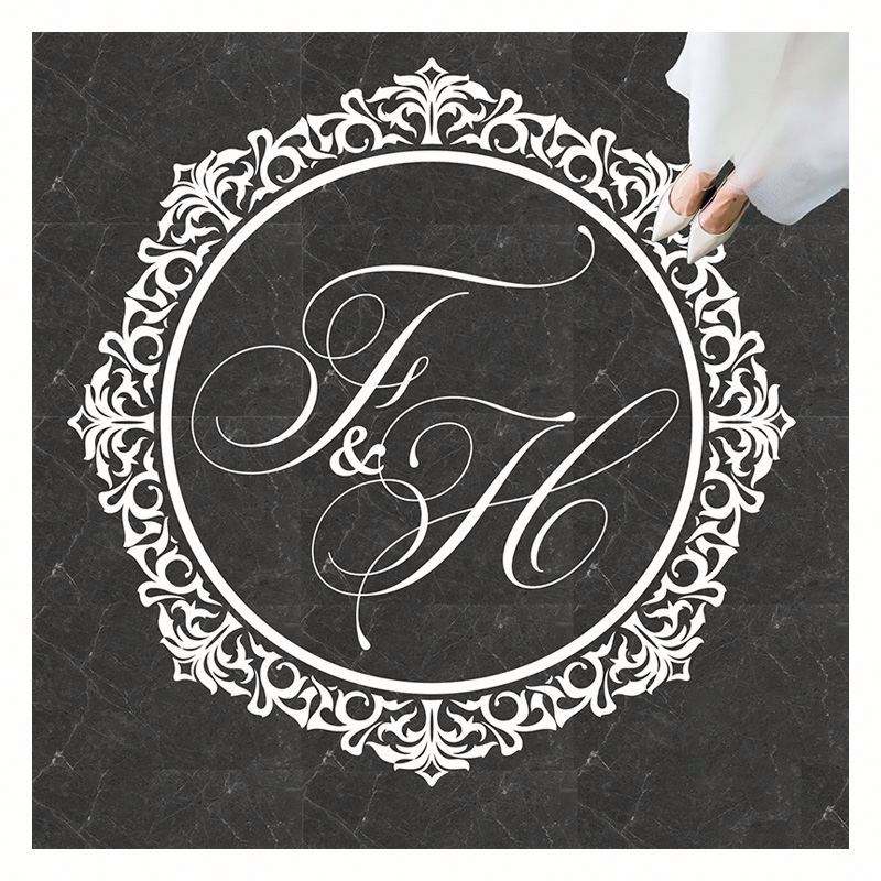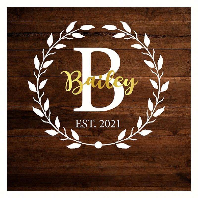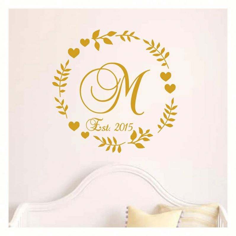 สติกเกอร์ติดผนังลายพวงหรีดแต่งงานแบบมีลายอักษรย่อ ชื่อเจ้าสาวเจ้าบ่าว แบบมันเงา ลอกออกได้