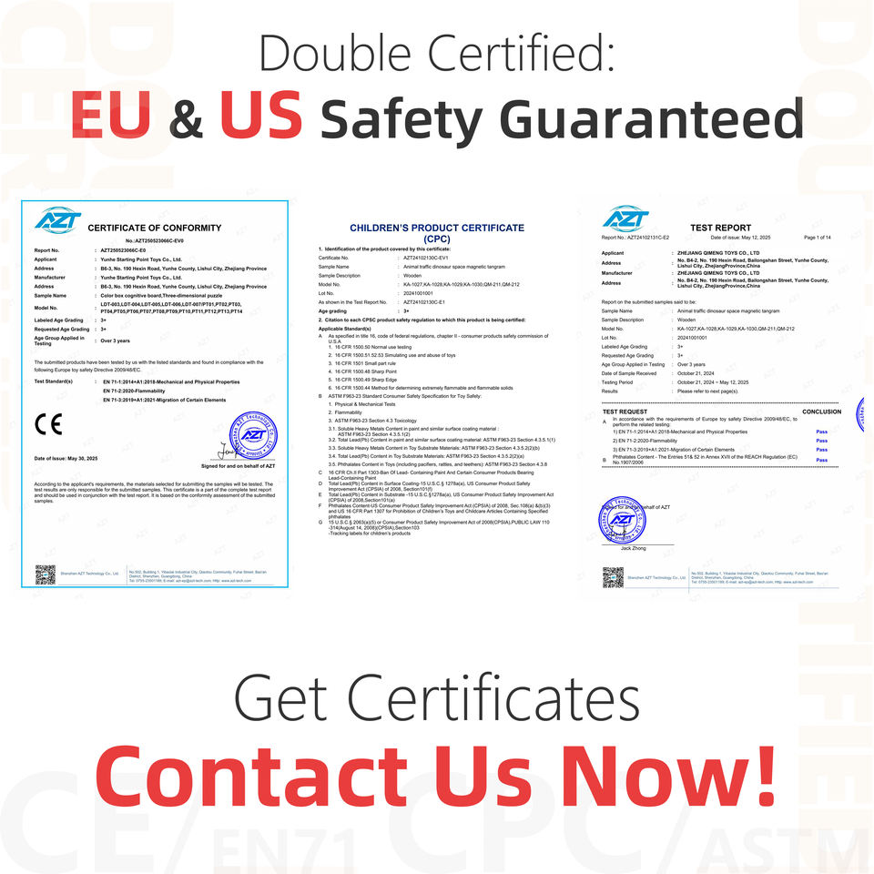 ใบรับรอง:CE, CPC, EN 71, ASTM, ISO 9001, การปรับแต่งใบรับรอง