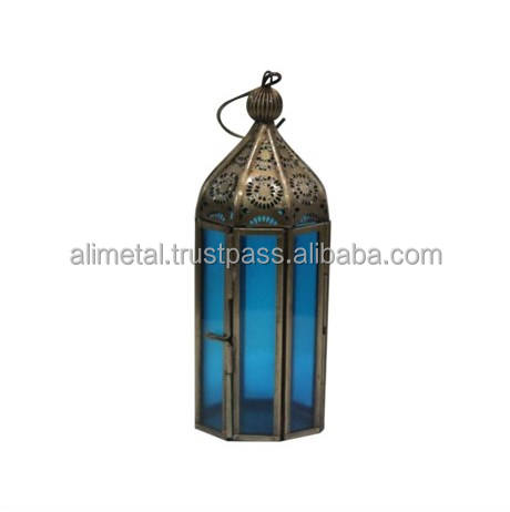 โคมไฟเทียนตั้งโต๊ะสไตล์โมร็อกโกพร้อมกระจกหน้าต่างสีฟ้าสำหรับตกแต่งบ้านในร่มและกลางแจ้งดีไซน์เฉพาะสำหรับพื้นที่ของคุณ