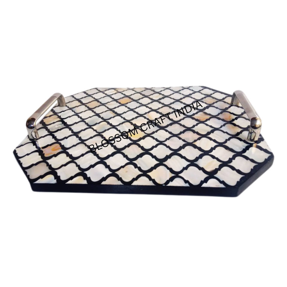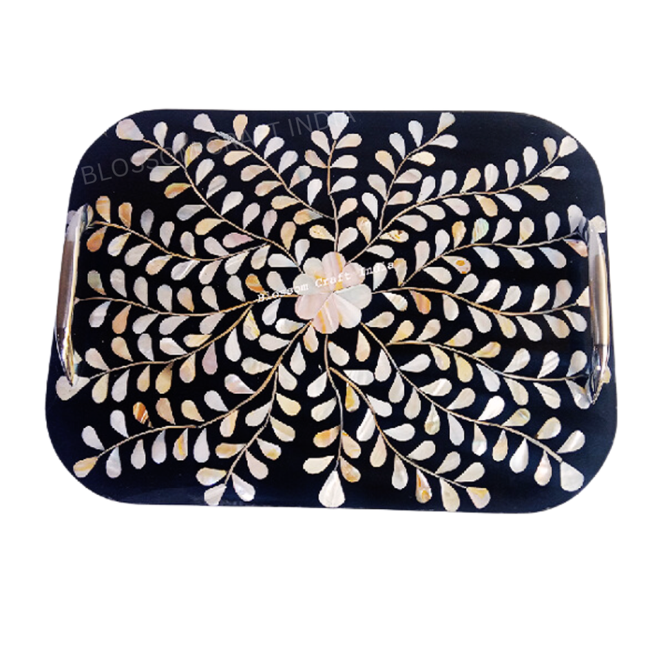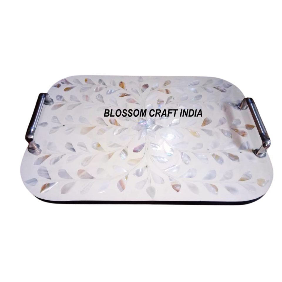 ชุดถาดรองจานฝังมุกและกระดูกของแม่พิมพ์ลายดอกไม้สไตล์โบราณถาดเสิร์ฟทรงสี่เหลี่ยมผืนผ้าพร้อมไม้ถูพื้นจานรองแก้วแบบเข้ากัน