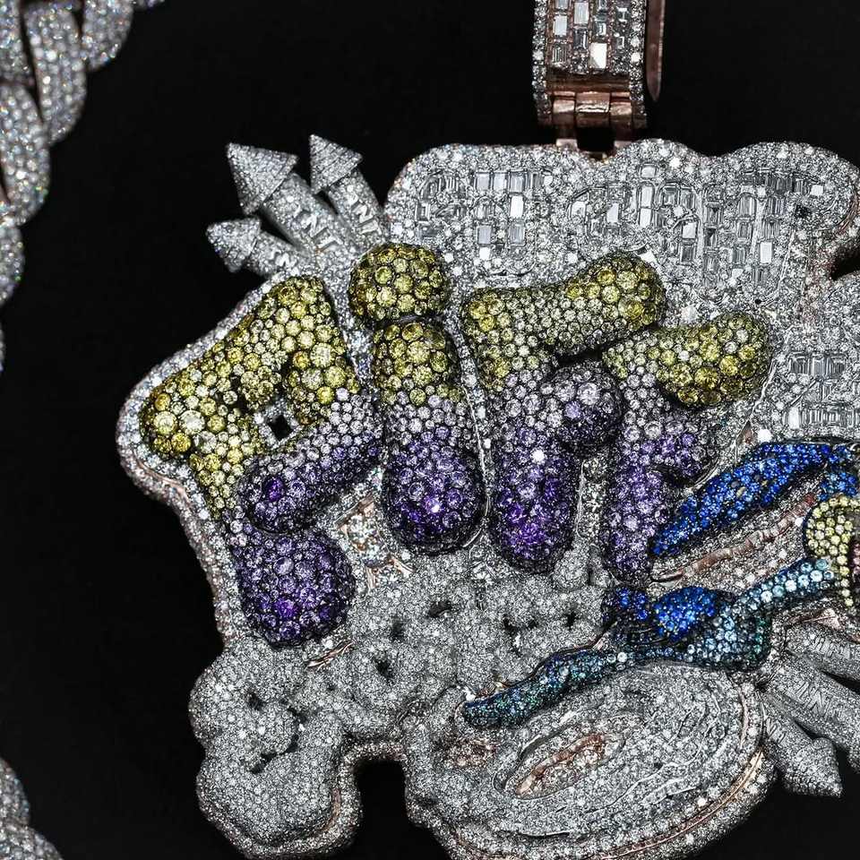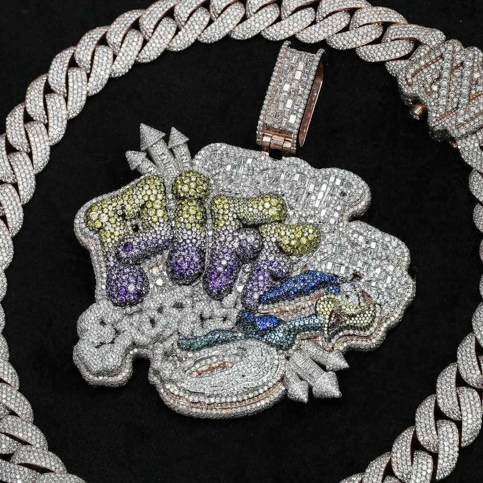 จี้เพชรโมอิสซาไนต์หลากสีแบบกำหนดเอง VVS เงินแท้ 925 สไตล์ฮิปฮอป จี้โลโก้แบบกำหนดเอง เครื่องประดับแบบเต็มเพชร