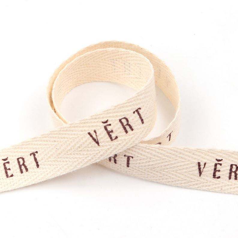 ริบบิ้นผ้าฝ้ายพิมพ์ลายโลโก้หลากสีตามสั่ง สำหรับตกแต่งของขวัญ บรรจุภัณฑ์เสื้อผ้า ทำจากผ้าทวิลล์เนื้อผ้าแคนวาสธรรมชาติ