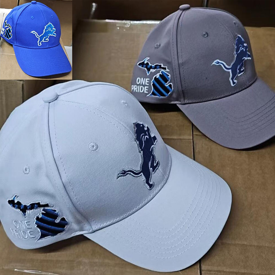 หมวกแก๊ปปักลายและพิมพ์ลายหลายตำแหน่งตามสั่ง ทีมดีทรอยต์ไลออนส์ ของ NFL ผ้าฝ้าย 100% สำหรับทุกเพศ