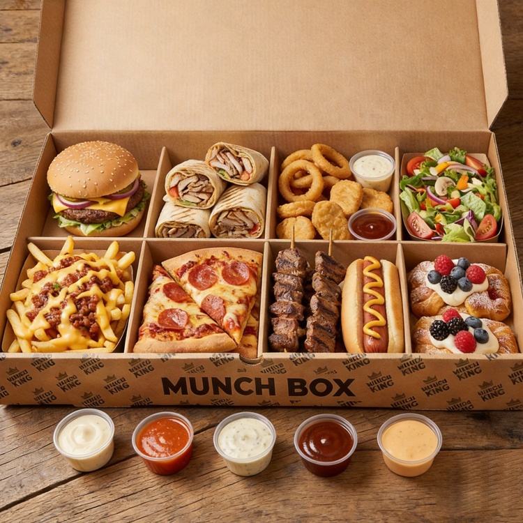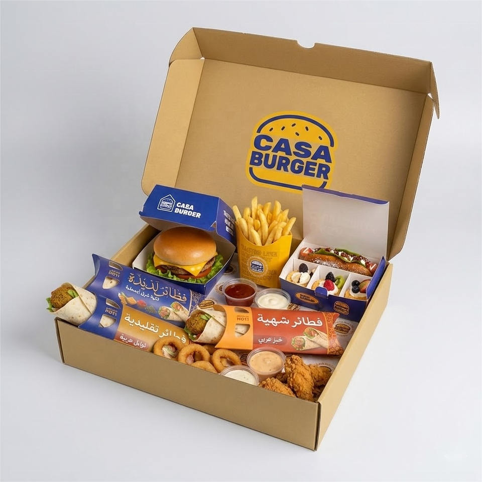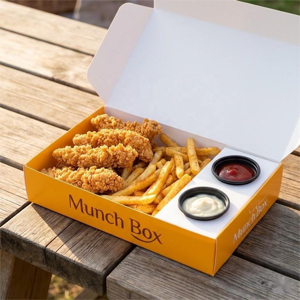 กล่องมันช์บ็อกซ์แบบกำหนดเอง กล่องขนมเกรดอาหารพร้อมพิมพ์โลโก้สำหรับซื้อกลับบ้าน