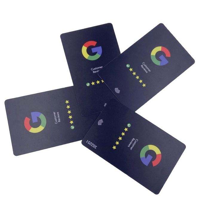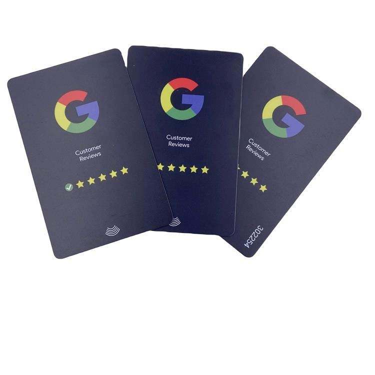 บัตรธุรกิจพลาสติก NFC ชิปแบบกำหนดเองสำหรับโซเชียลมีเดีย รีวิวเราบน Google รีวิว NFC
