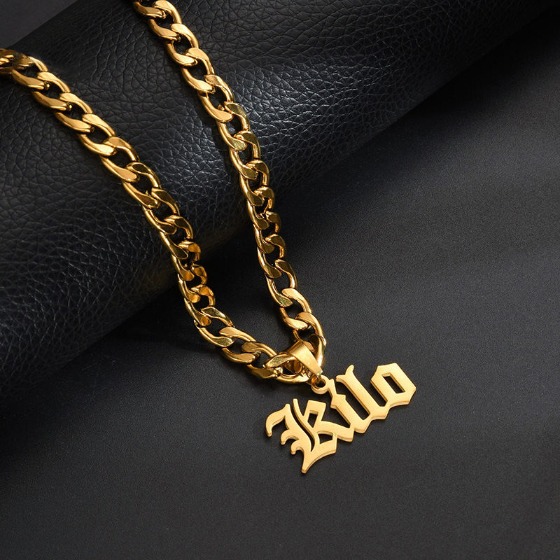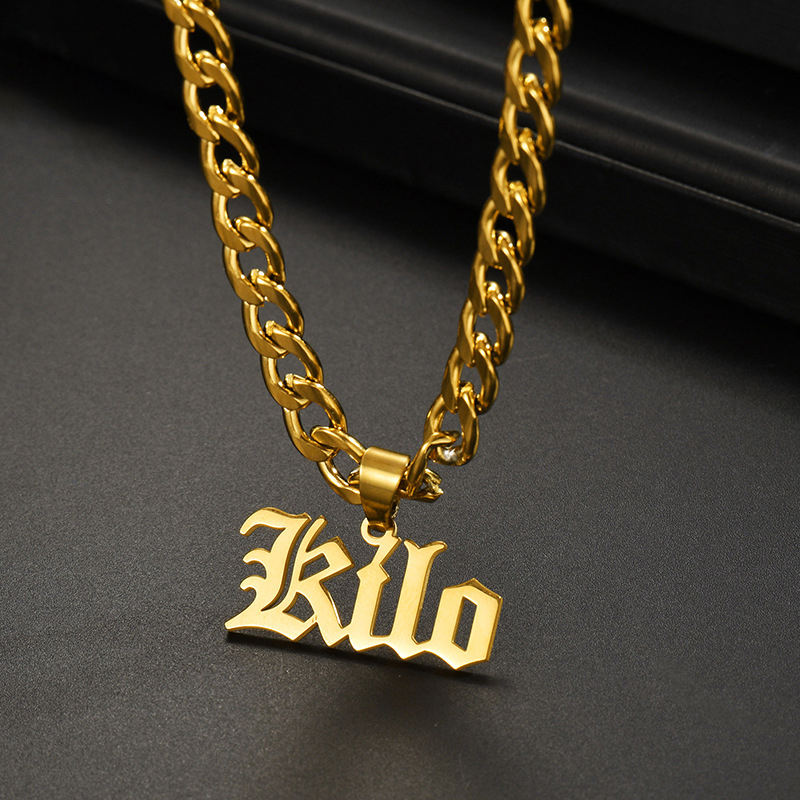 สร้อยคอจี้สแตนเลสชุบทองกำหนดชื่อเองของขวัญเฉพาะบุคคลสไตล์ฮิปฮอปสำหรับผู้หญิงผู้ชาย2045