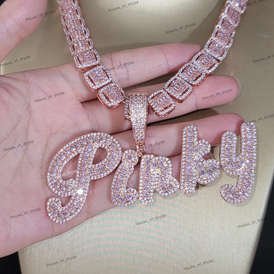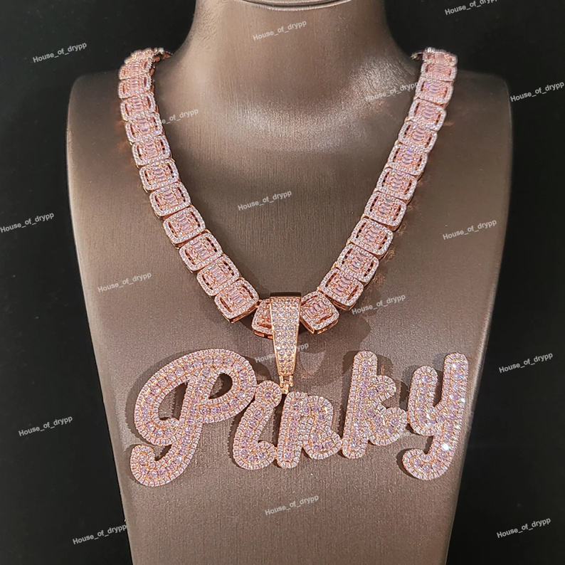 สร้อยคอฮิปฮอปแบบยูนิเซ็กซ์ ชื่อสั่งทำได้ ประดับเพชรโมอิสซาไนต์ทรงกลมและทรงบาแกตต์ ชุบโรเดียม ฝังแบบเพฟและแชนแนล