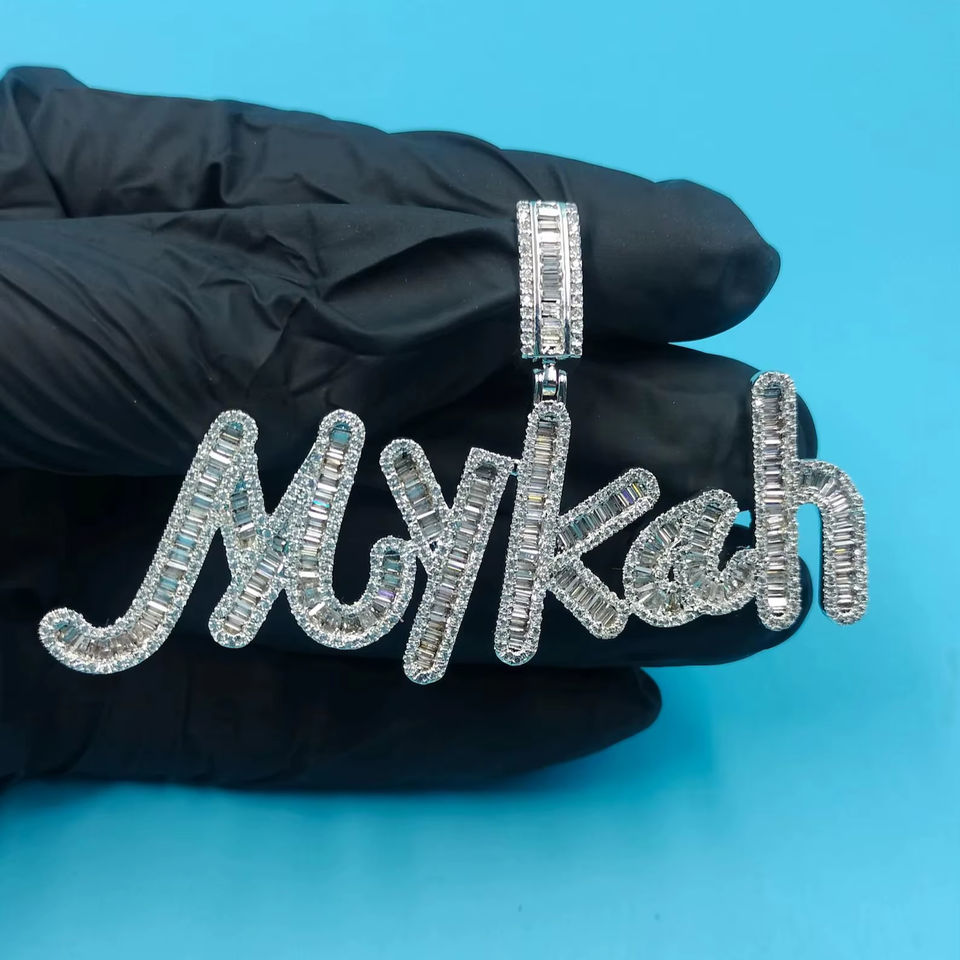 จี้เพชรโมอิสซาไนต์เงินแท้ 925 สลักชื่อตามสั่ง สไตล์ฮิปฮอป ตัวอักษรแบบสคริปต์ เครื่องประดับสำหรับทุกเพศ