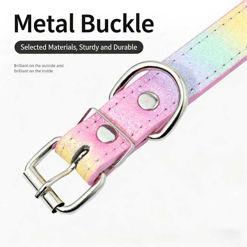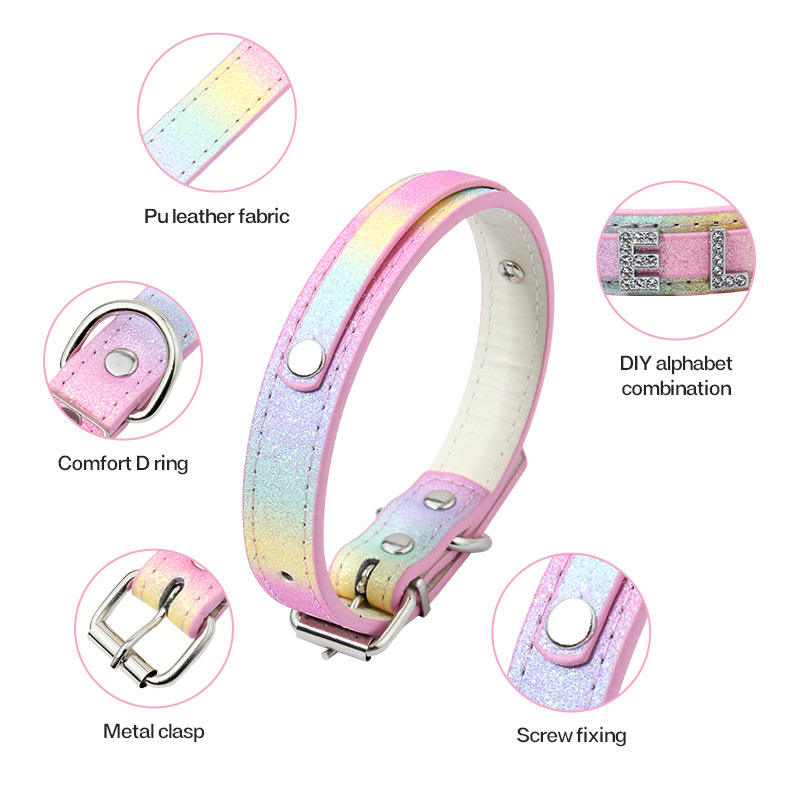 ปลอกคอสุนัขแบบกำหนดเอง ตัวอักษรประดับ ดีไซน์รุ้งระยิบระยับ หรูหรา ผลิตจากหนัง PU นุ่ม เป็นมิตรกับสิ่งแวดล้อม สำหรับสุนัข