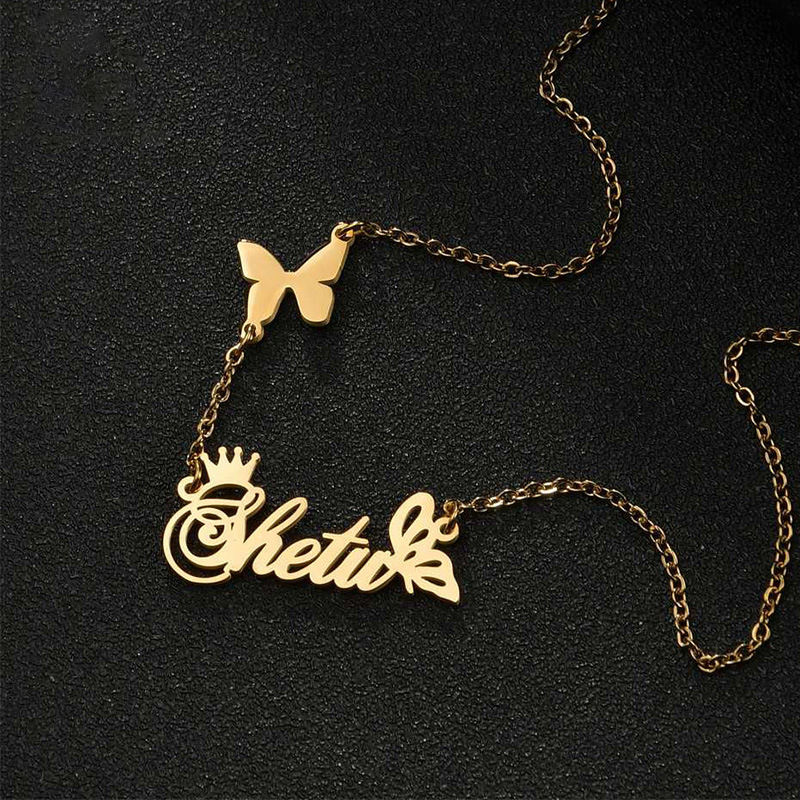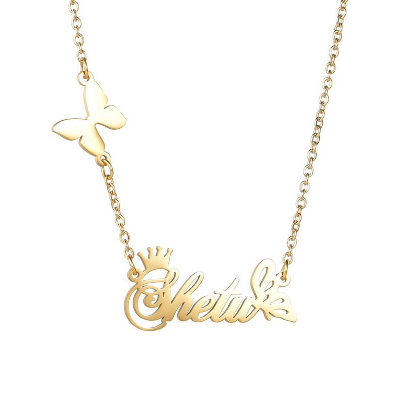 สร้อยคอสแตนเลสประดับมงกุฎผีเสื้อของขวัญเฉพาะบุคคลสำหรับผู้หญิงผู้ชาย uionen 1994