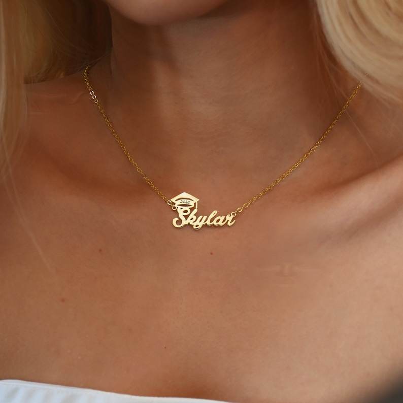 สร้อยคอออกแบบชื่อสำหรับเธอ925เงินสเตอร์ลิง14K ชุบทองหมวกจบการศึกษาเครื่องประดับพร้อมโซ่