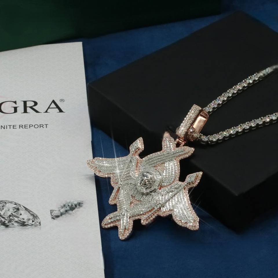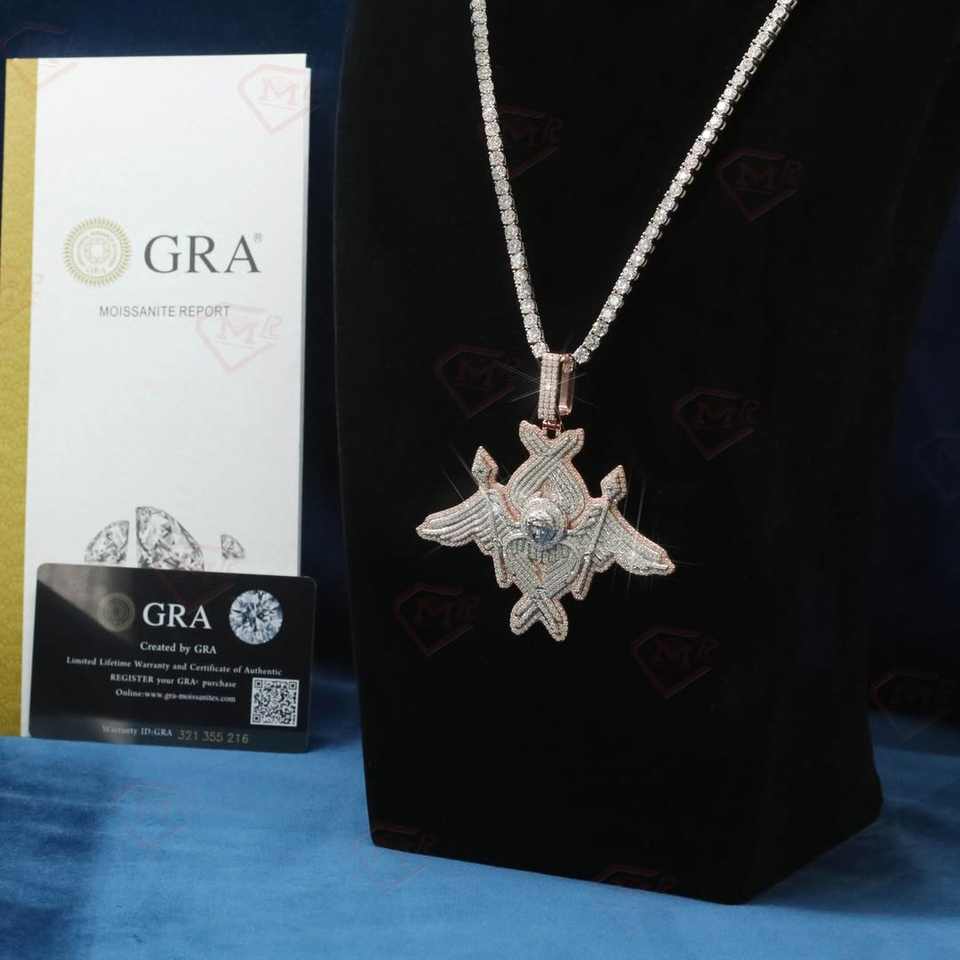 จี้ห้อยคอแบบกำหนดเอง เงินแท้ 925 ชุบโรเดียม GRA มอยส์ซาไนต์ ผ่านการทดสอบเพชร ตัวอักษรทันสมัย สำหรับผู้ที่ได้รับการรับรอง