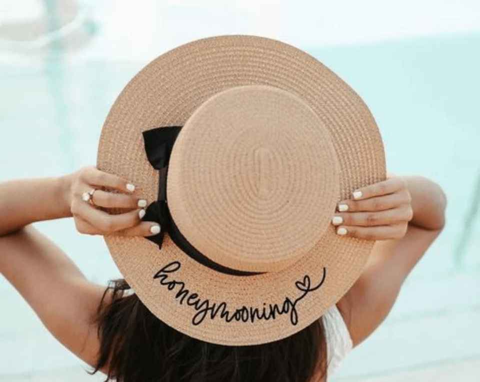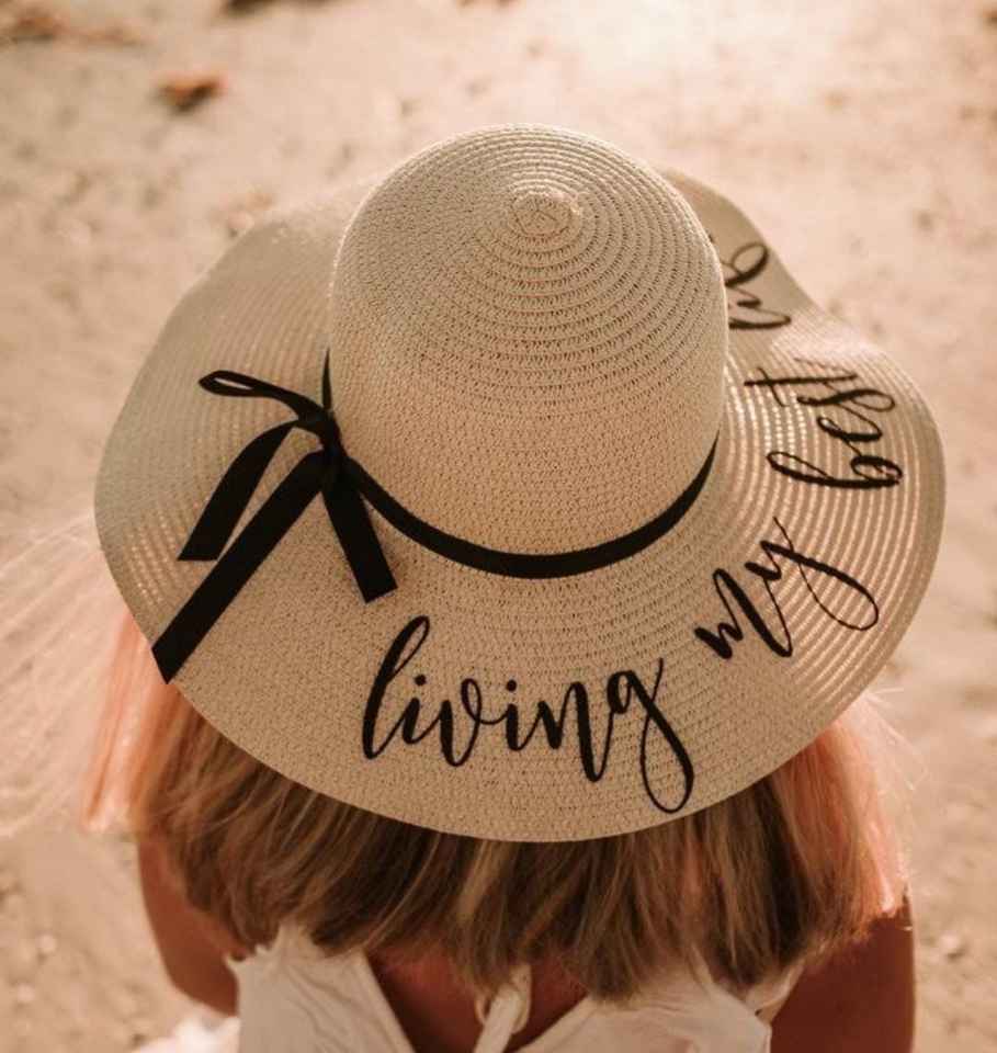 หมวกสานปักชื่อได้ ปักมือ ปีกกว้าง สำหรับชายหาด ตกปลา ลำลอง ปั่นจักรยาน หมวกฤดูร้อนสำหรับผู้หญิง หมวกเดินทางสำหรับผู้ใหญ่