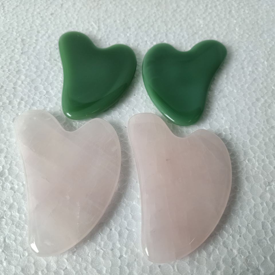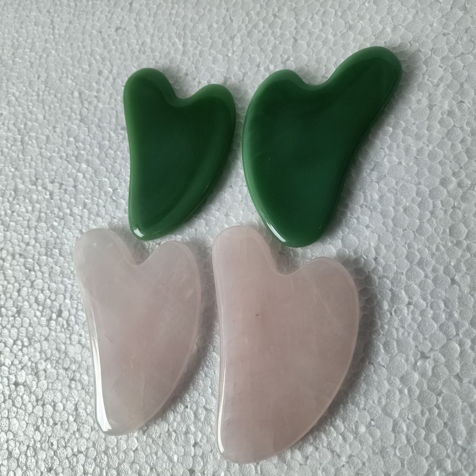 Custom Natural Gemstone Guasha Made From Rose Quartz and Jade Gemstones Ideal for Resale by Massage Parlours and Artists