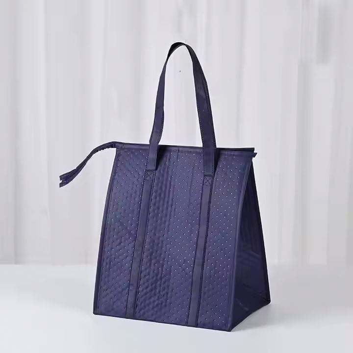 กระเป๋าใส่อาหารแบบพกพาสีน้ำเงินกรมท่า ไม่ใช้ผ้าทอ แบบมีฉนวนกันความร้อน นำกลับมาใช้ใหม่ได้ เก็บความร้อนและความเย็น กระเป๋าถือ