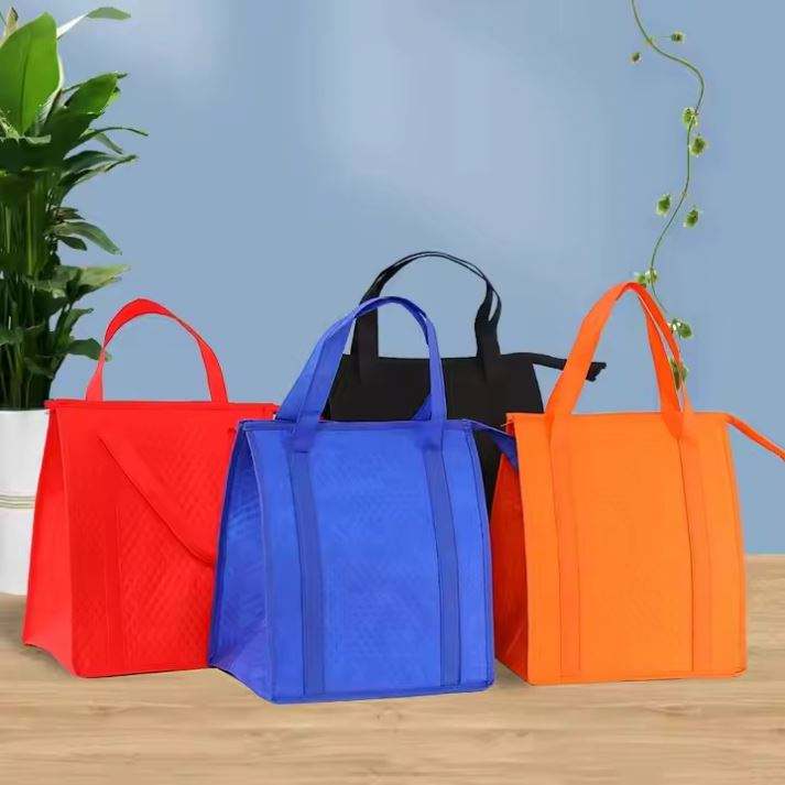 กระเป๋าเก็บอุณหภูมิแบบพกพา สีน้ำเงินกรมท่า ไม่มีลาย ทำจากผ้าไม่ถักทอ สำหรับใส่อาหาร ใช้ซ้ำได้ เก็บความร้อนและความเย็นได้