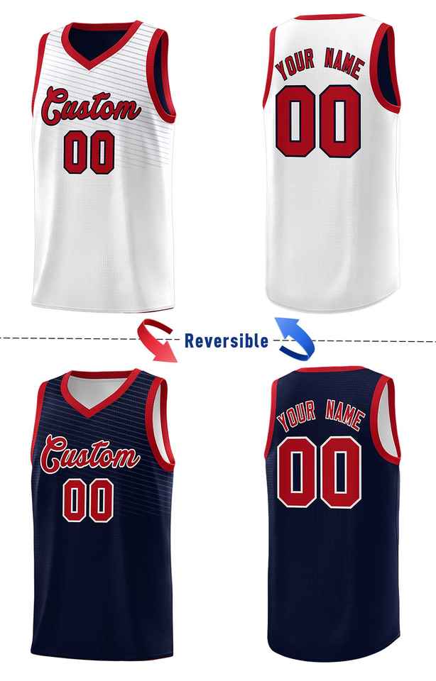 เสื้อบาสเก็ตบอลแบบสปอร์ตสองด้านลายทางสีขาวกรมท่าแบบกำหนดเอง
