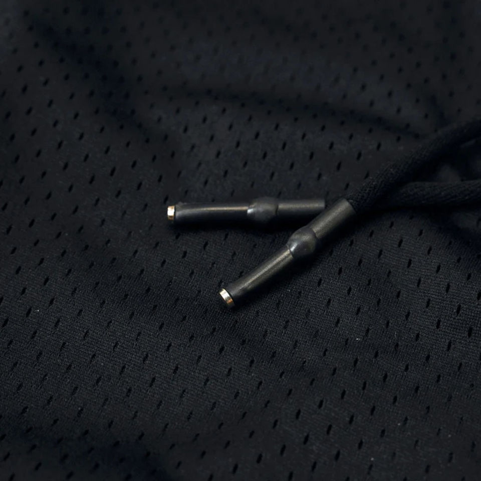 กางเกงขาสั้นบาสเก็ตบอลสีเขียวนีออนพร้อมผ้าตาข่ายระบายอากาศขอบสีดำเอวยางยืดออกกำลังกายเล่นเกมออกแบบได้ตามต้องการ