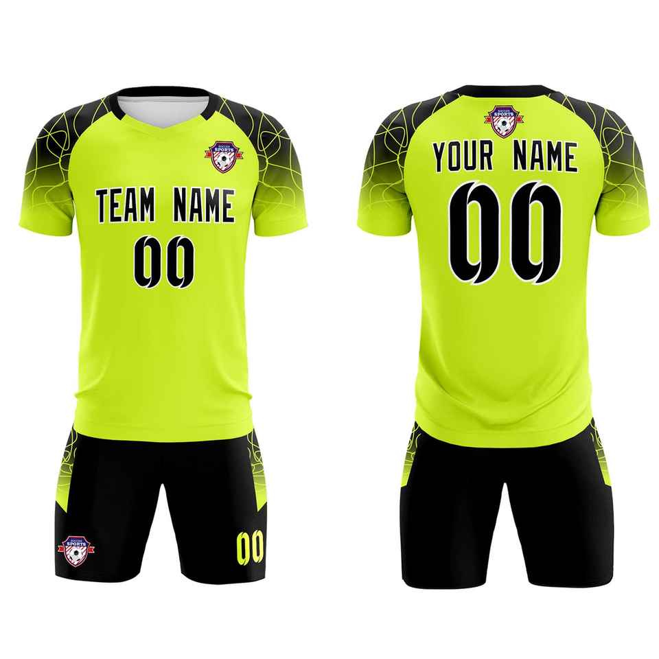 ชุดฝึกซ้อมฟุตบอลสีเขียวนีออนแบบคลาสสิกสำหรับผู้ใหญ่/เด็ก