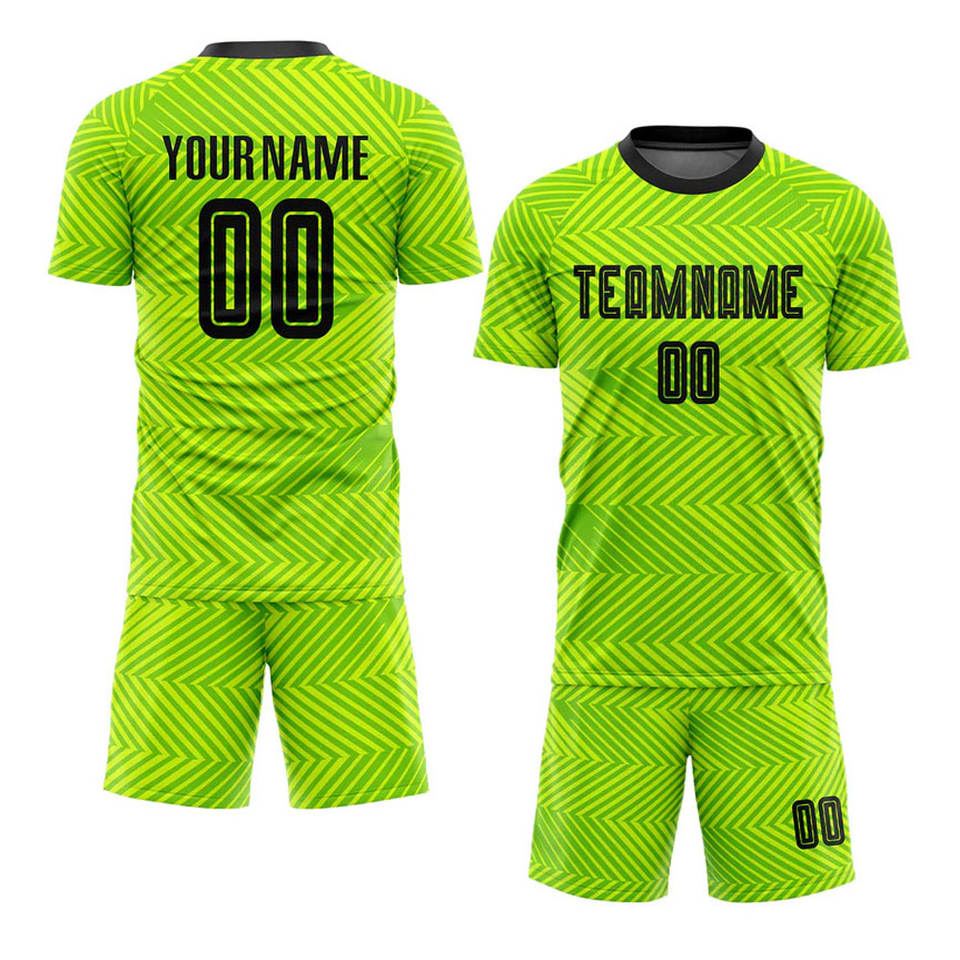 เสื้อฟุตบอลสีเขียวนีออนแบบกำหนดเอง ลายมะนาว เสื้อฝึกซ้อมแบบระบายอากาศ แห้งเร็ว พิมพ์ลายแบบซับลิเมชั่น สำหรับทีมกีฬา
