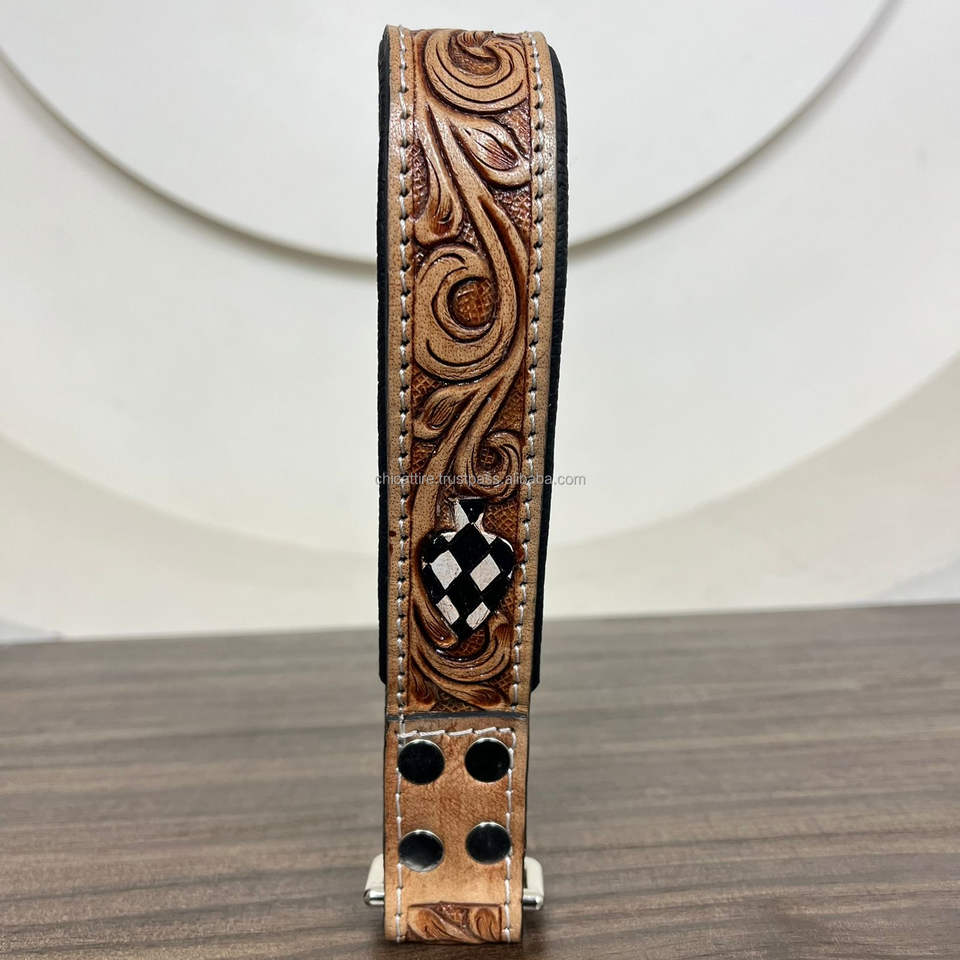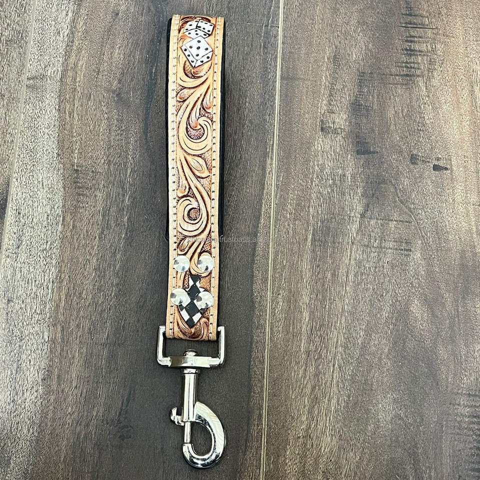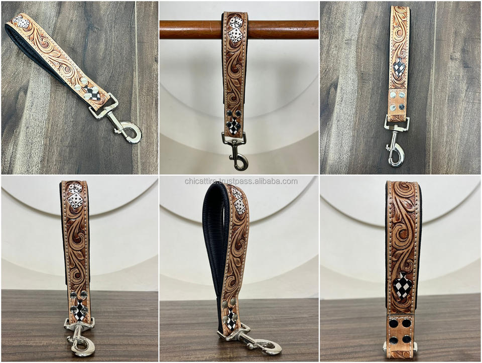 Product name:Hand Tooled Checkered Leather Traffic Dog Lead