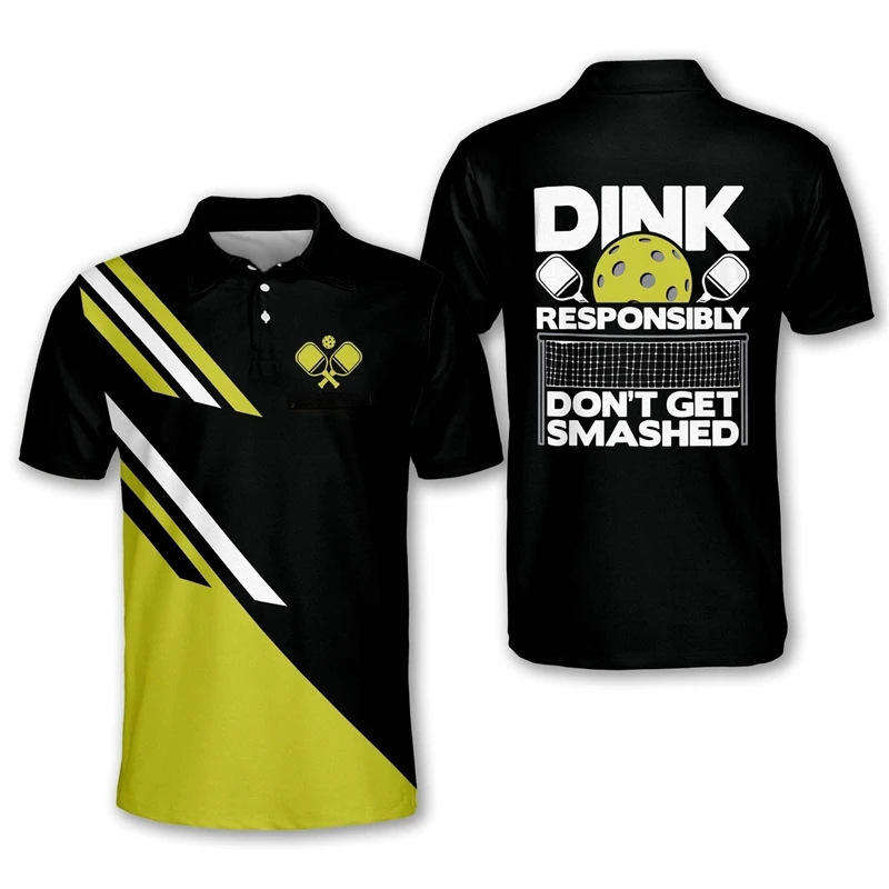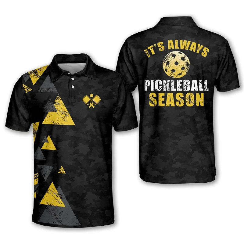 เสื้อโปโลพิมพ์ลายกีฬาผู้ชายรุ่นใหม่ ผ้าโพลีเอสเตอร์ ระบายอากาศ แห้งเร็ว เหมาะสำหรับเล่นพิคเคิลบอล