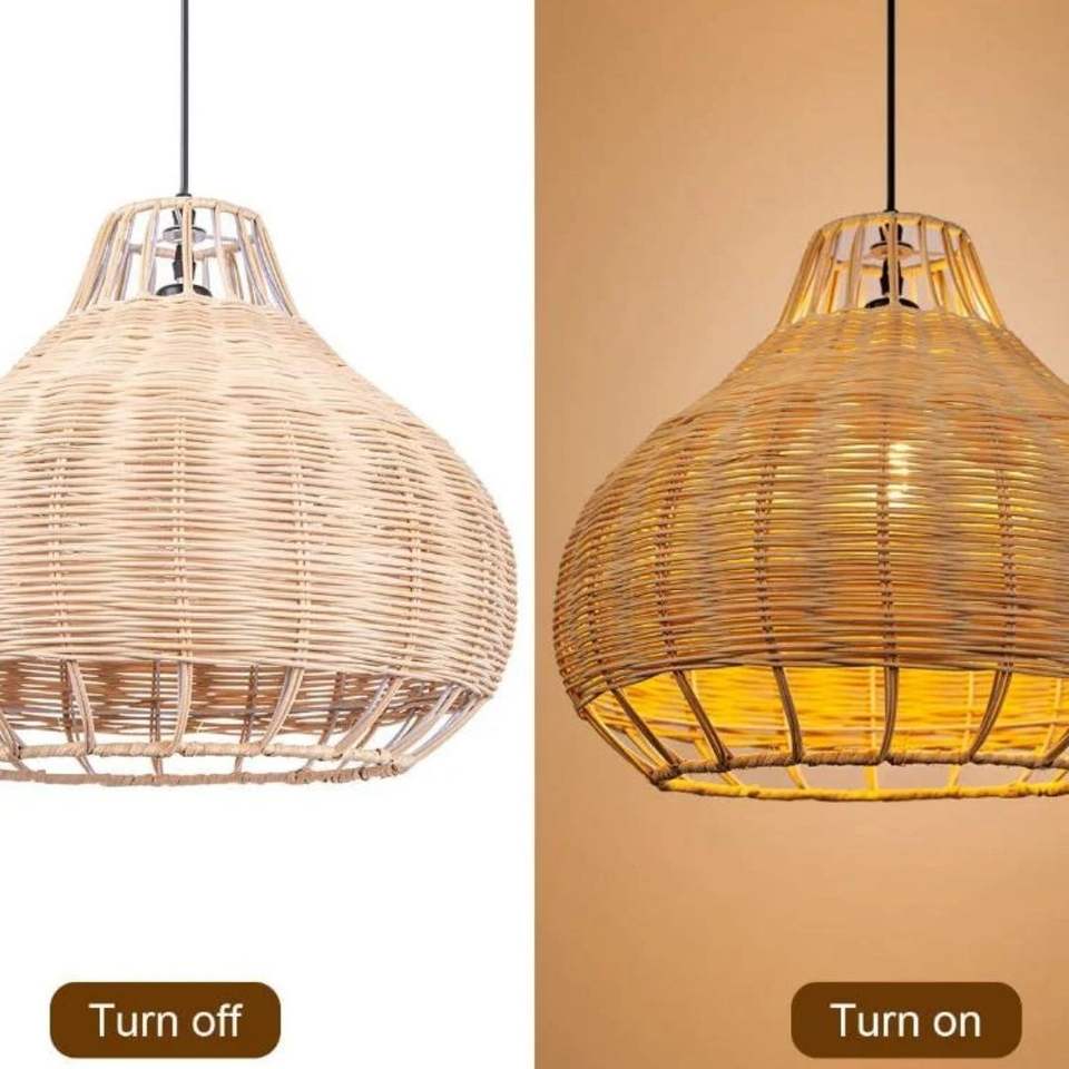 โคมไฟแขวนเพดานทำจากหวายคลาสสิกแบบกำหนดเองโคมไฟแขวนเพดานสำหรับตกแต่งบ้านร้านอาหาร