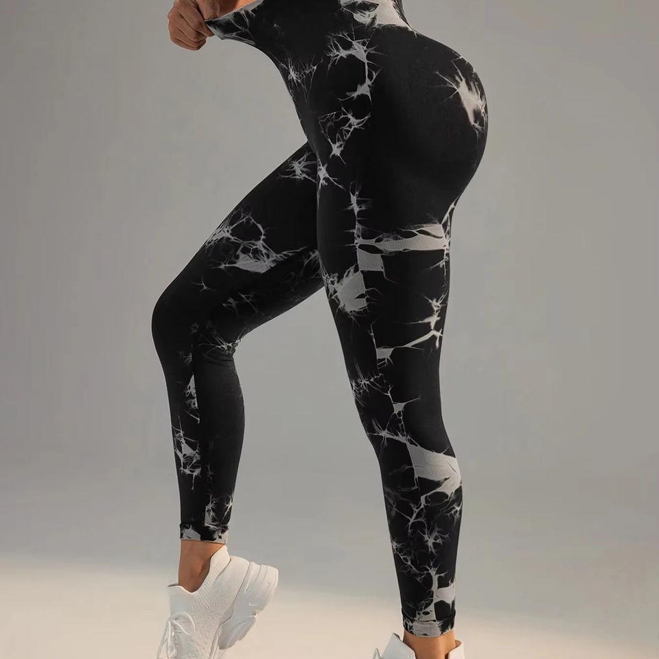 เลกกิ้งออกกำลังกายฟิตเนสเลกกิ้งผ้าย้อมไร้ตะเข็บเลกกิ้งแนวสตรีทแฟชั่นกำหนดได้เองดีไซน์ใหม่