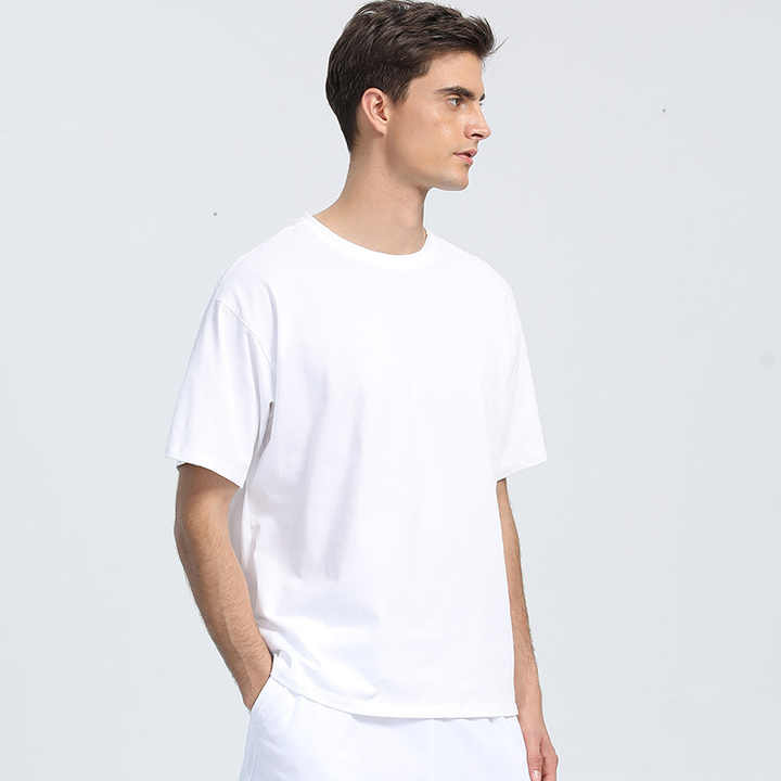 เสื้อยืดผู้ชายผ้าฝ้ายออร์แกนิคสีพื้นสำหรับยิมสีพื้นเสื้อยืดผู้ชายผ้าฝ้ายออร์แกนิกโอเวอร์ไซส์ออกแบบได้ตามต้องการ