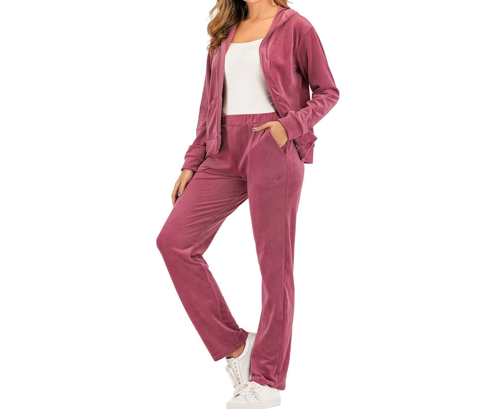 ชุดวอร์มมีฮู้ดและกางเกงผ้ากำมะหยี่สำหรับผู้หญิงเสื้อแขนยาวออกแบบได้ตามต้องการ