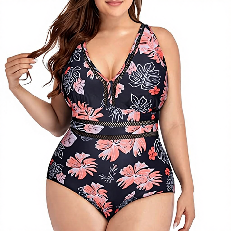 Custom New Plus Size Hot Sale Sexy Solid 1-Piece Bikini Beachwear V Neck Swimsuit Fat Women Front Logo
