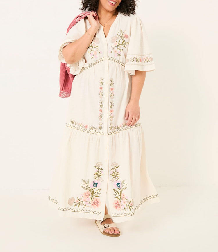 ชุดเดรสยาวลำลองลายปักสำหรับผู้หญิงไซส์พลัส ผ้าฝ้ายทรงหลวมพิมพ์ลายดอกไม้ แฟชั่นฤดูร้อนสำหรับใส่ไปเที่ยวชายหาด รับผลิตแบบ OEM
