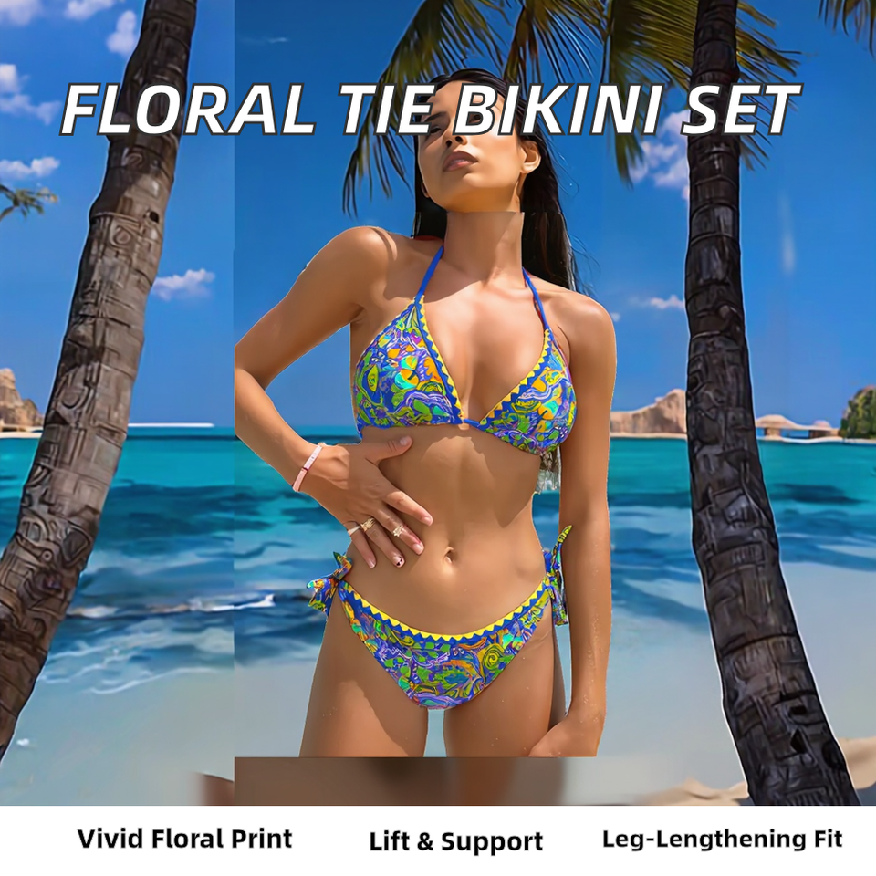 ชุดบิกินี่ทูพีซแบบใหม่สุดเซ็กซี่ ทรงดันทรง ตะเข็บเย็บแบบพิเศษ ทรงสามเหลี่ยม ผูกด้านข้าง สำหรับผู้หญิง