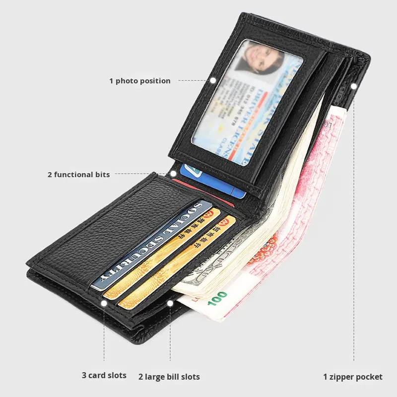 กระเป๋าสตางค์หนังแท้ผู้ชายแบบพับได้ สไตล์เรโทร ดีไซน์ใหม่ ทันสมัย เหมาะสำหรับธุรกิจ