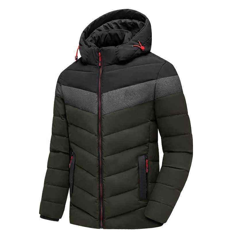 เสื้อแจ็คเก็ตบุนวมผ้าแคนวาสของผู้ชายเสื้อกันลมมีปกตั้งสไตล์สองโทนฤดูหนาว