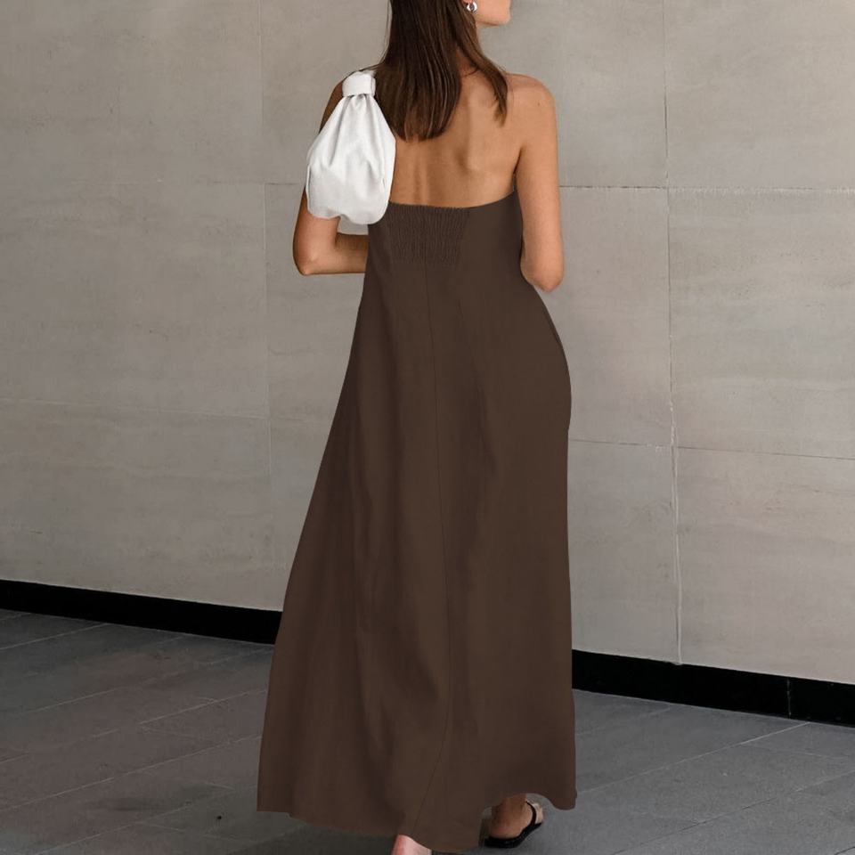 เดรสยาวแบบใหม่ไร้แขนสไตล์เซ็กซี่สำหรับงานปาร์ตี้ ชุดเดรสหรูหราสำหรับผู้หญิง รับผลิตแบบ OEM