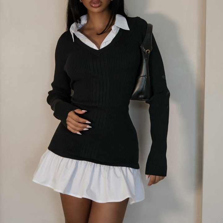 Custom New Summer Boutique High Quality Cute Elegant Women Bodycon Pleated Dress Color Blocking Long-sleeve Chic Female Dresses