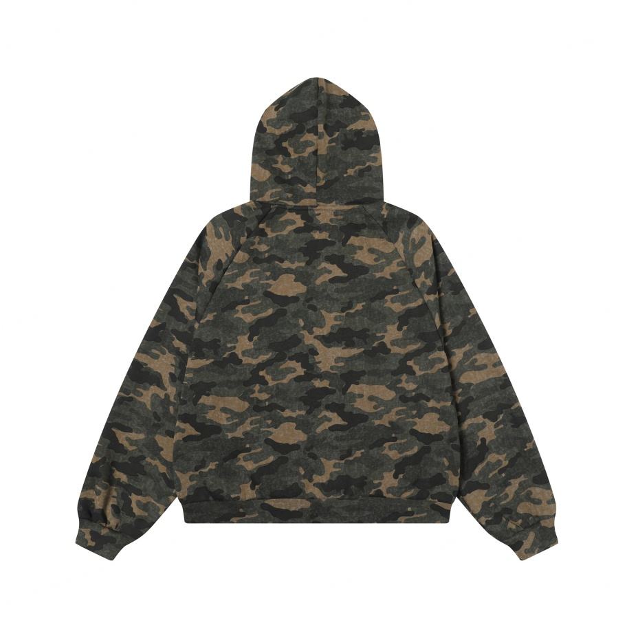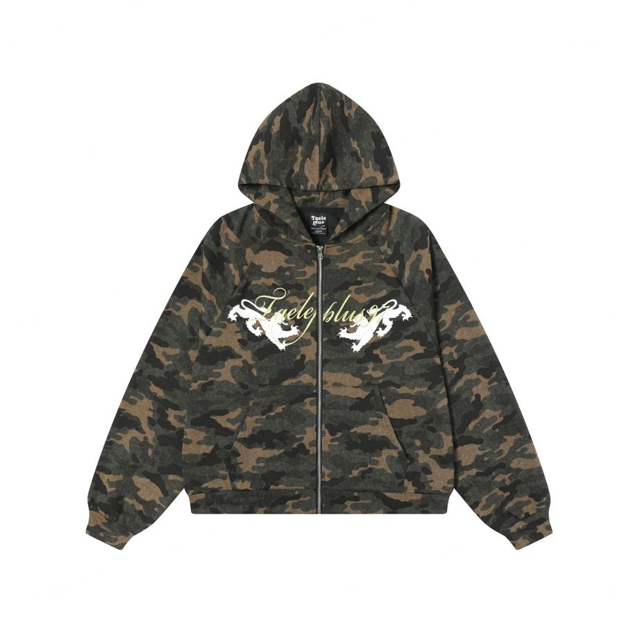 Custom New Trend Camouflage Tree Zipper-Up Hip Pop Silk Screen Printing 100% Cotton Autumn Oversized Men's Hoodie Sweatshirt